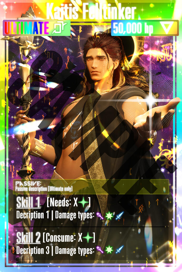 Each card was hand made in Clip Studio Paint and will be customized based on the Gpose taken of the character.